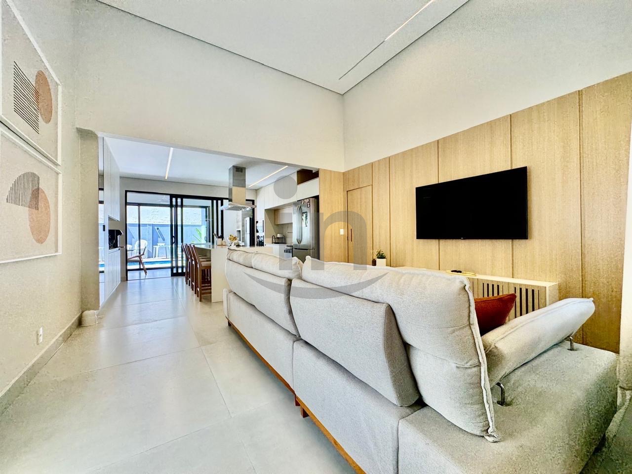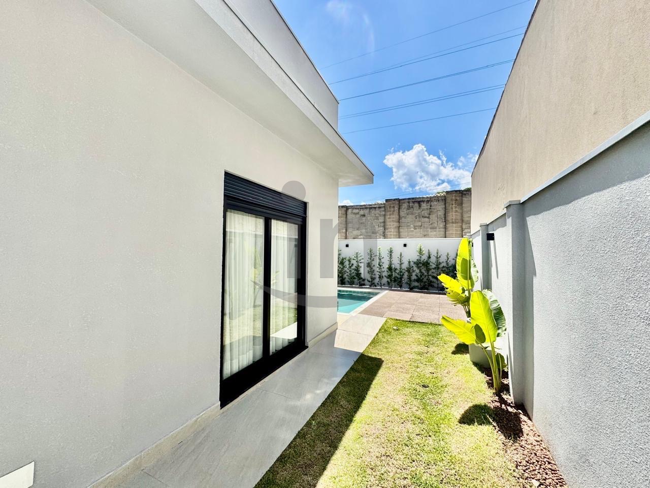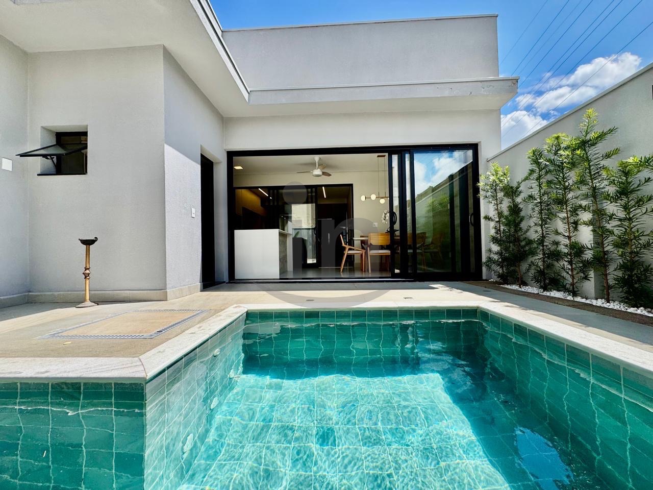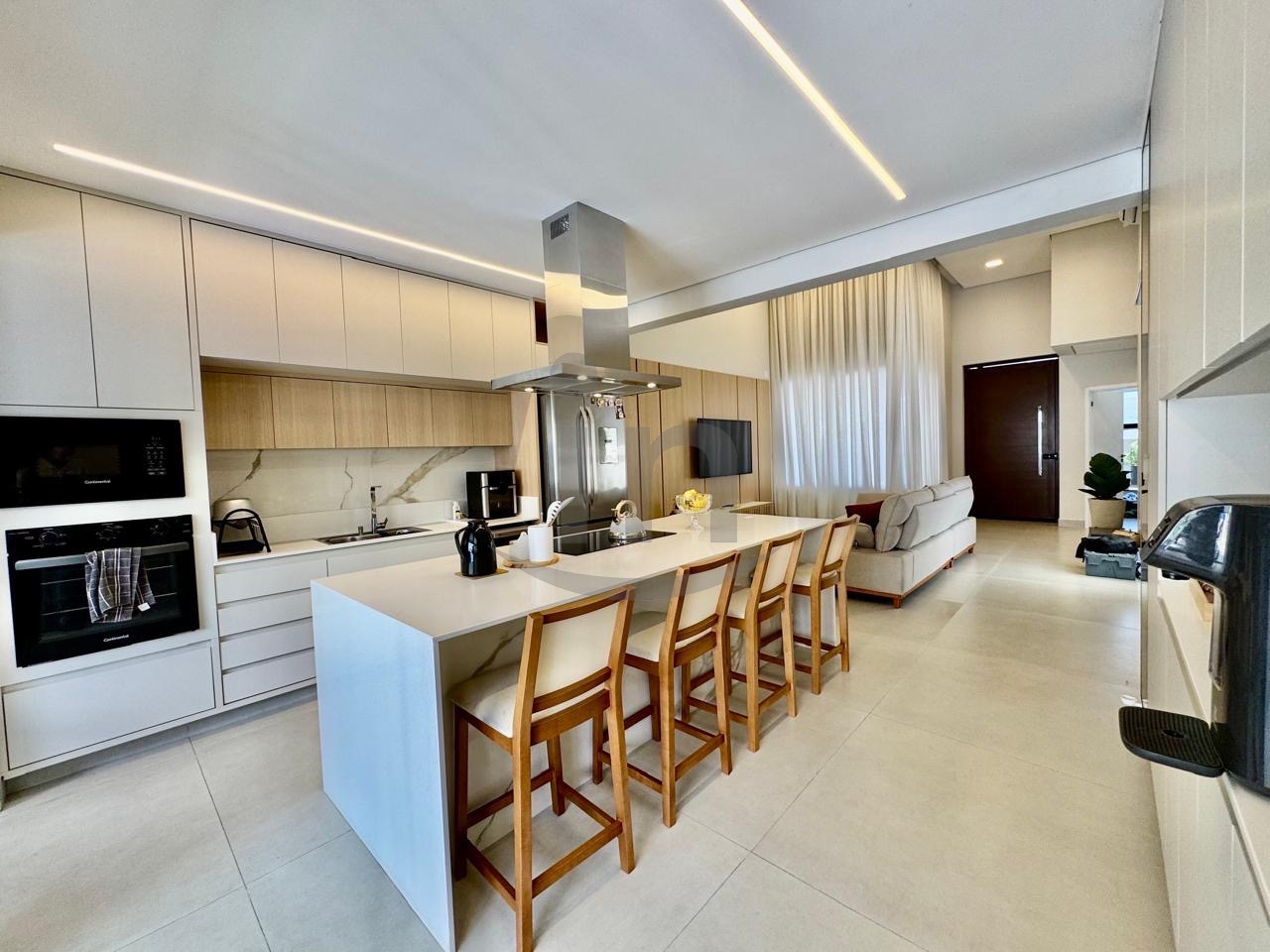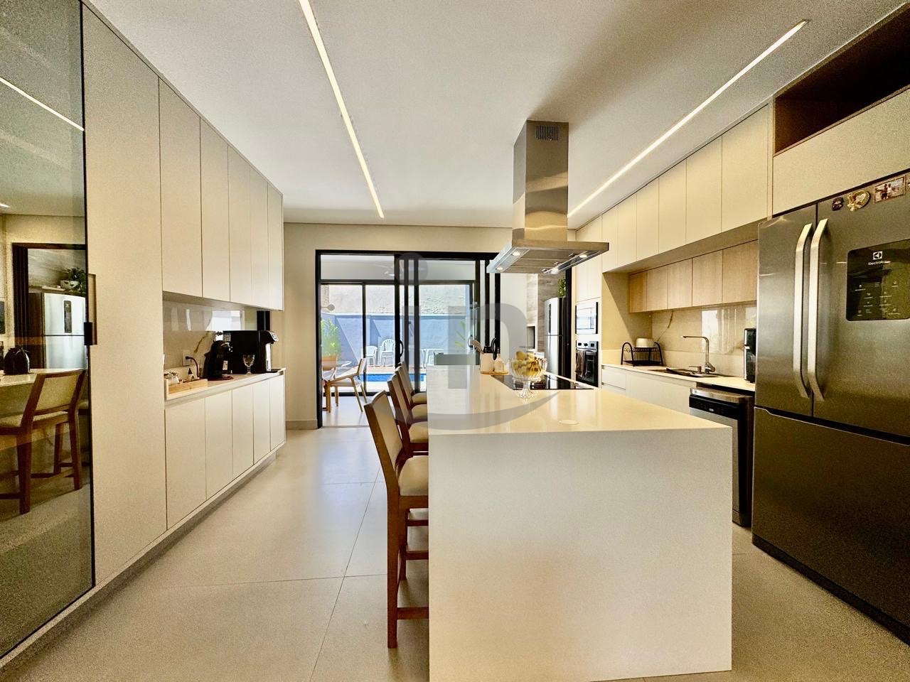 Linda casa térrea, com 3 suítes, master com closet, sala para dois ambientes, lavabo, escritório, cozinha integrada, lazer com área gourmet e piscina aquecida.