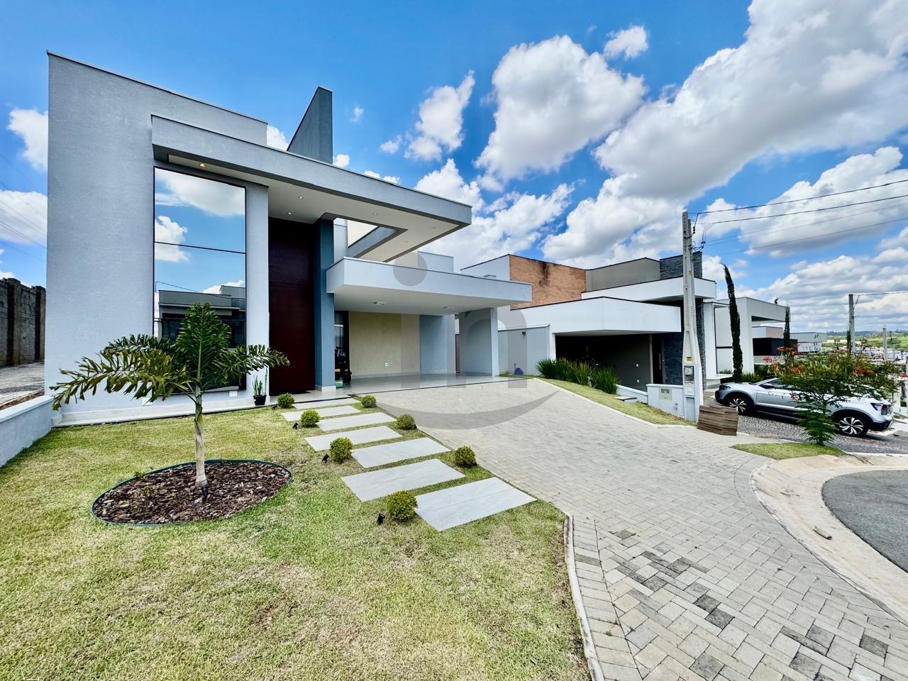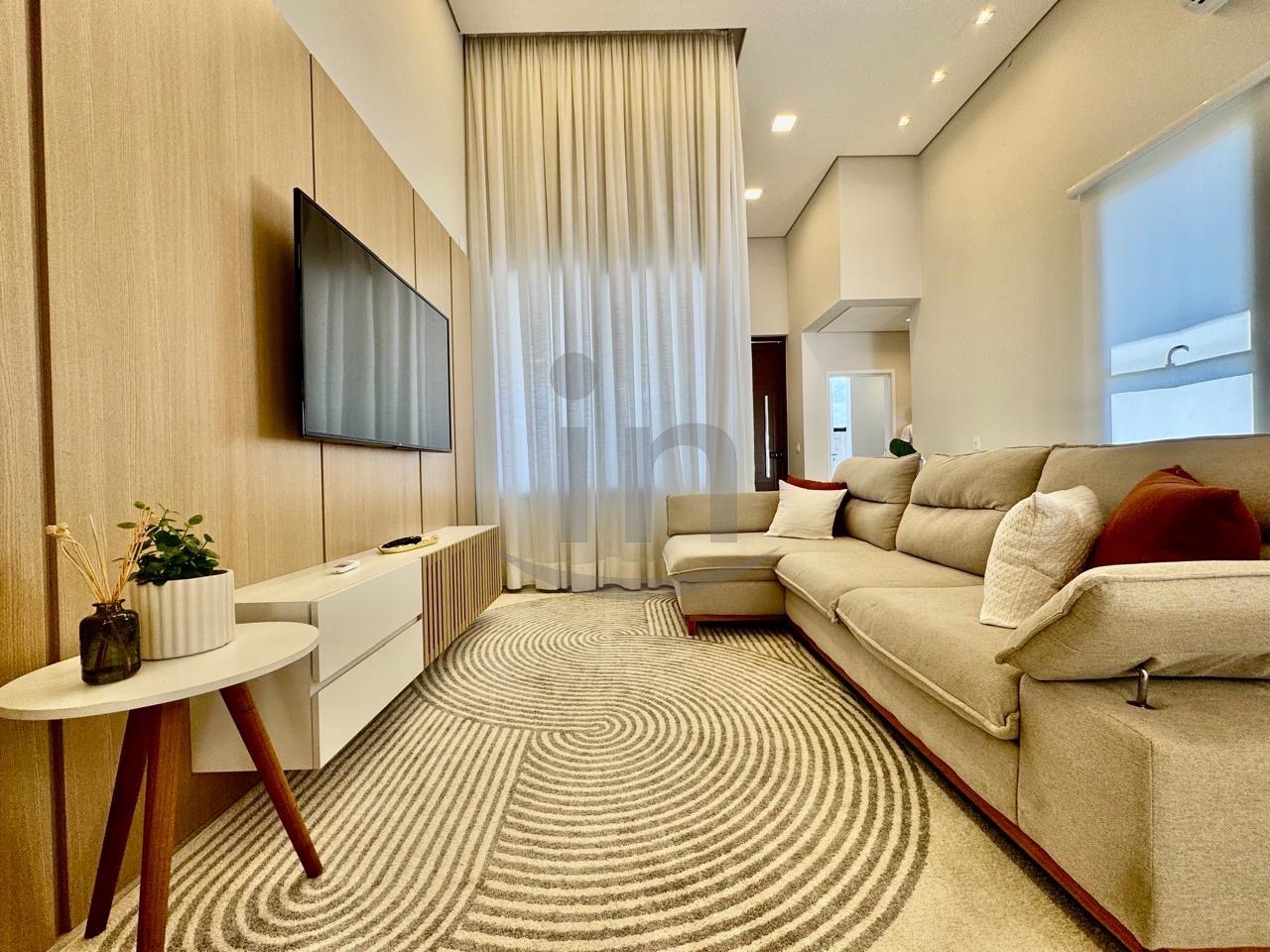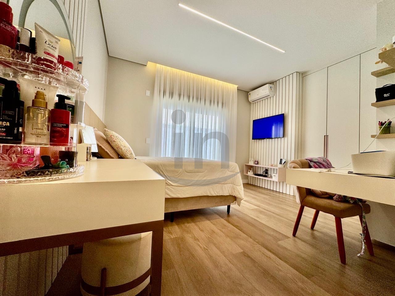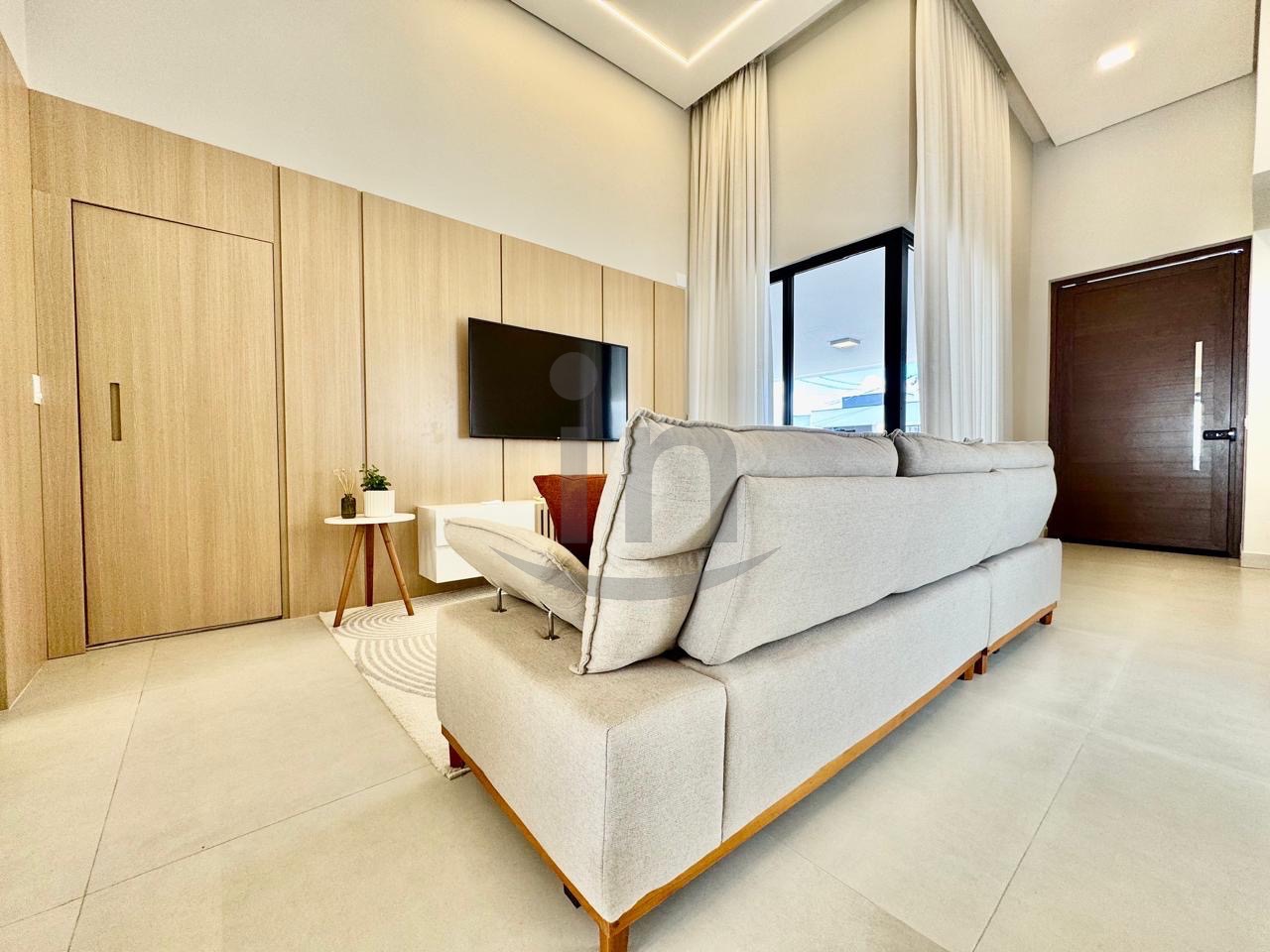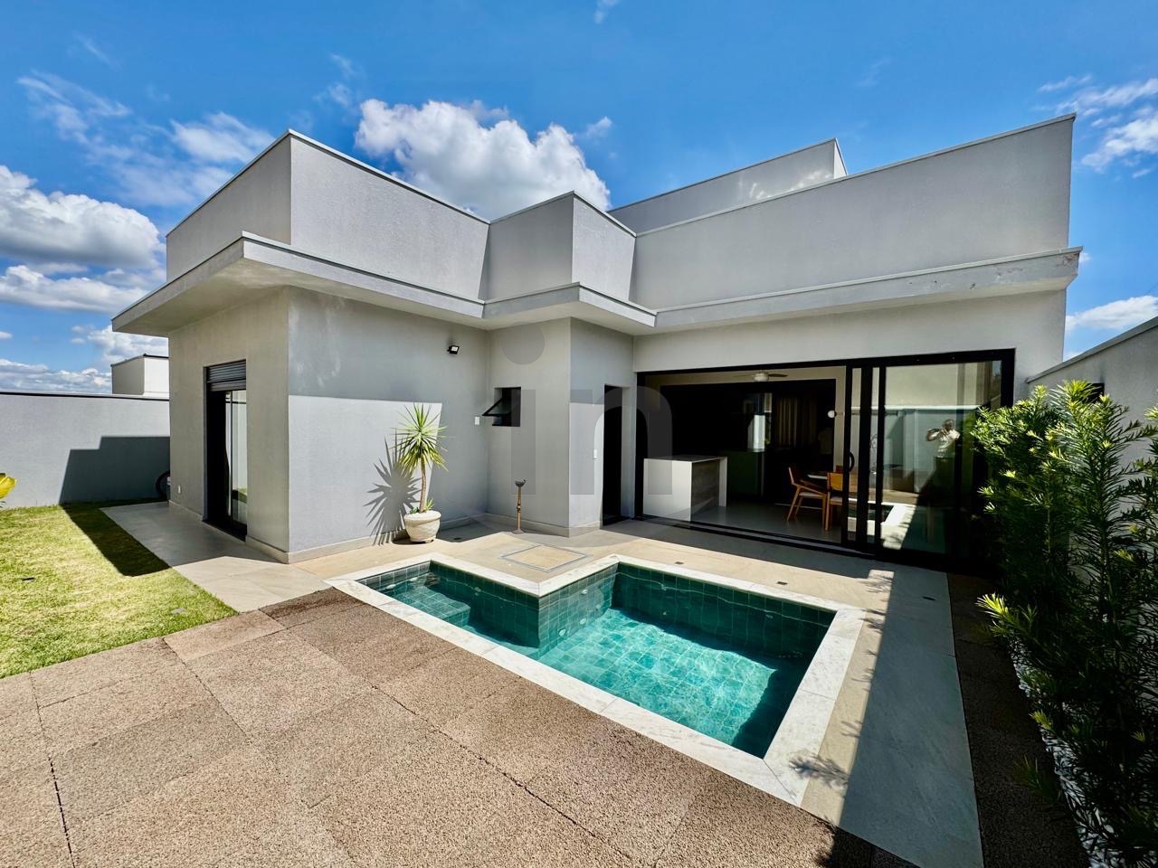 Linda casa térrea, com 3 suítes, master com closet, sala para dois ambientes, lavabo, escritório, cozinha integrada, lazer com área gourmet e piscina aquecida.