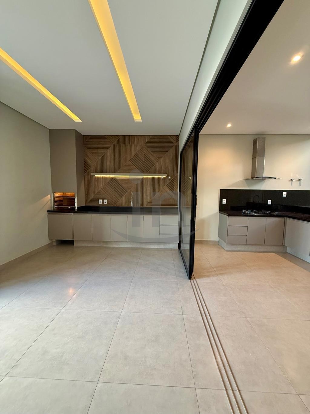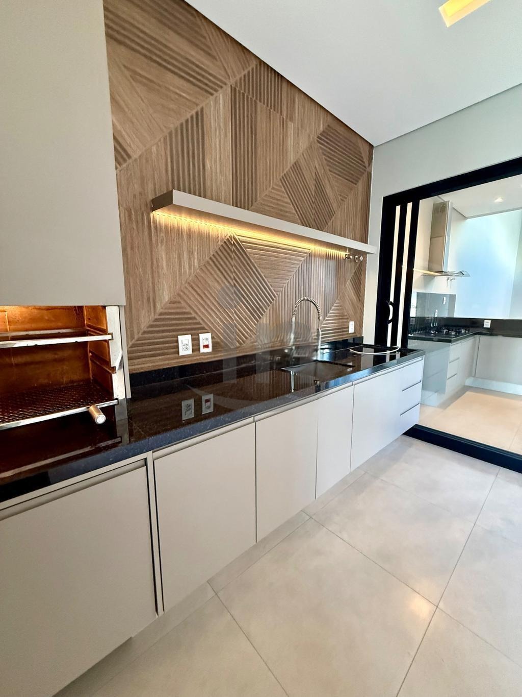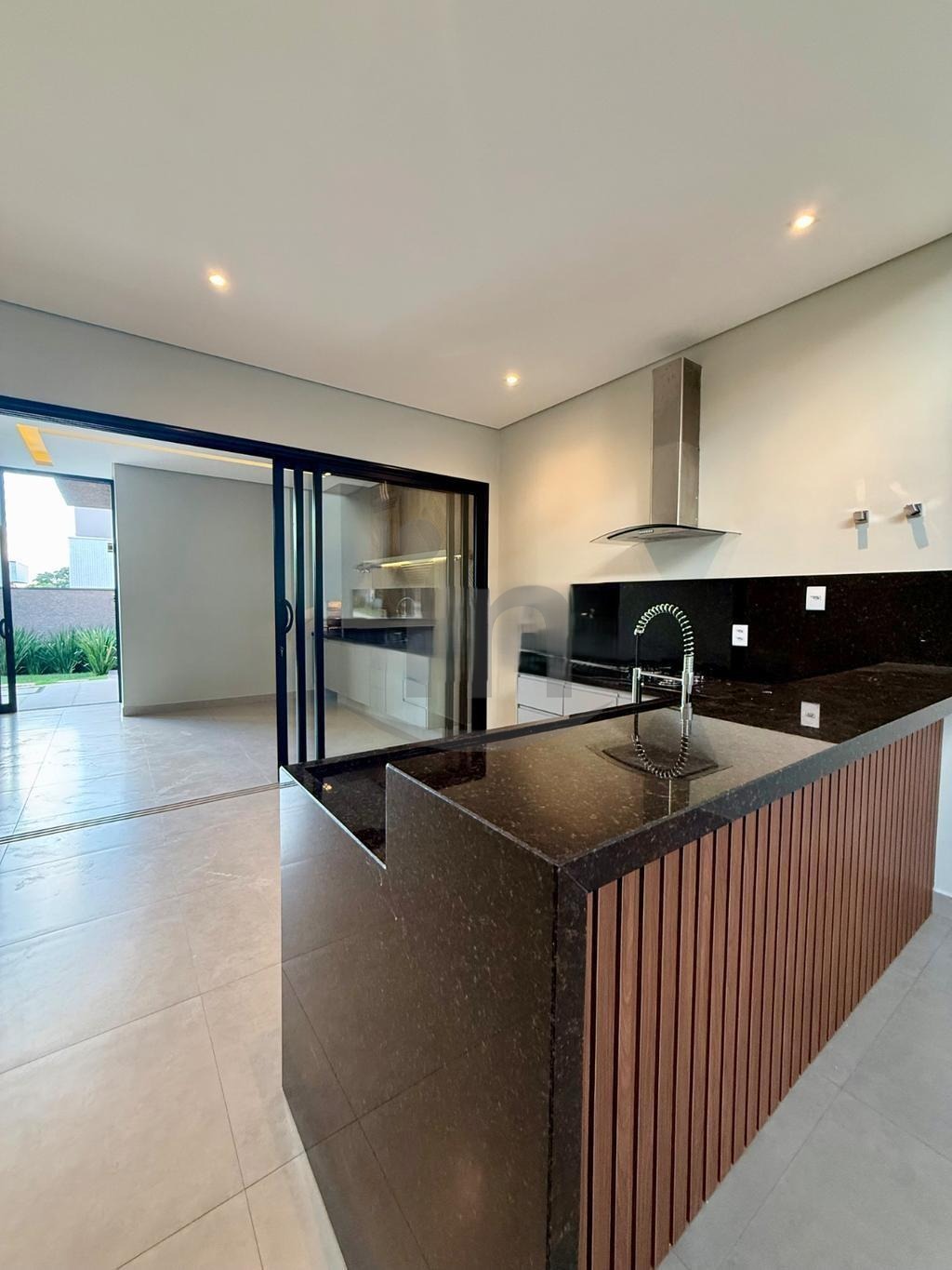 Espaço gourmet com quintal, piscina e churrasqueira.
