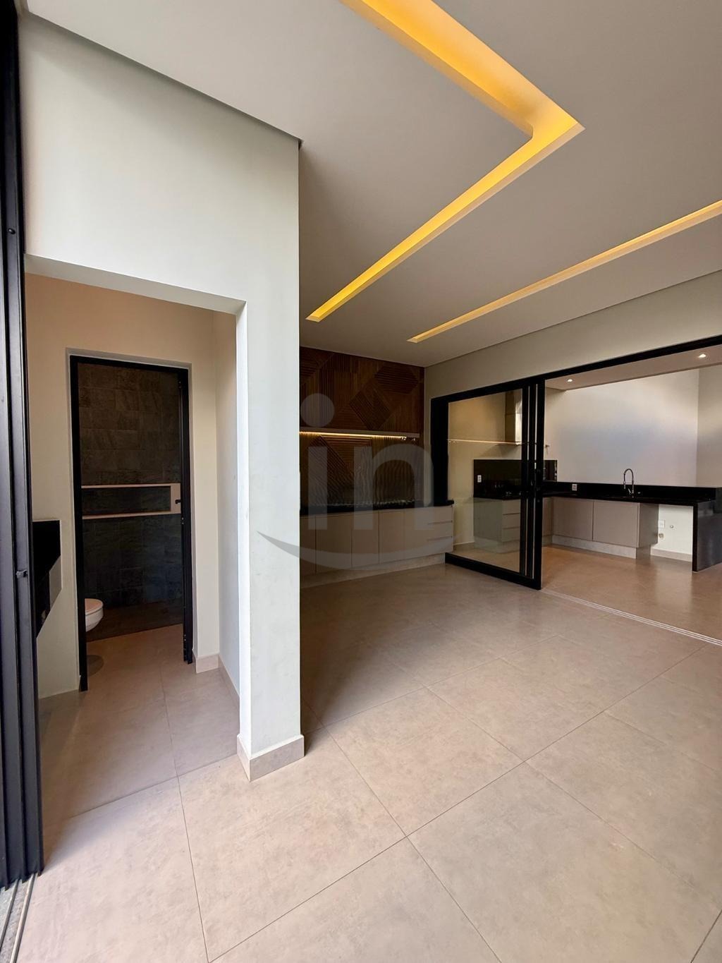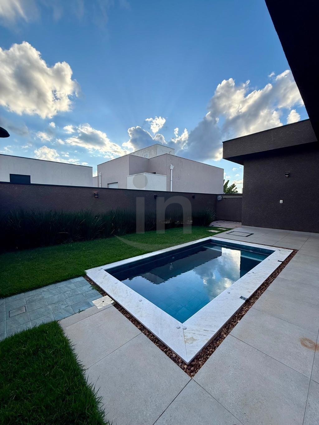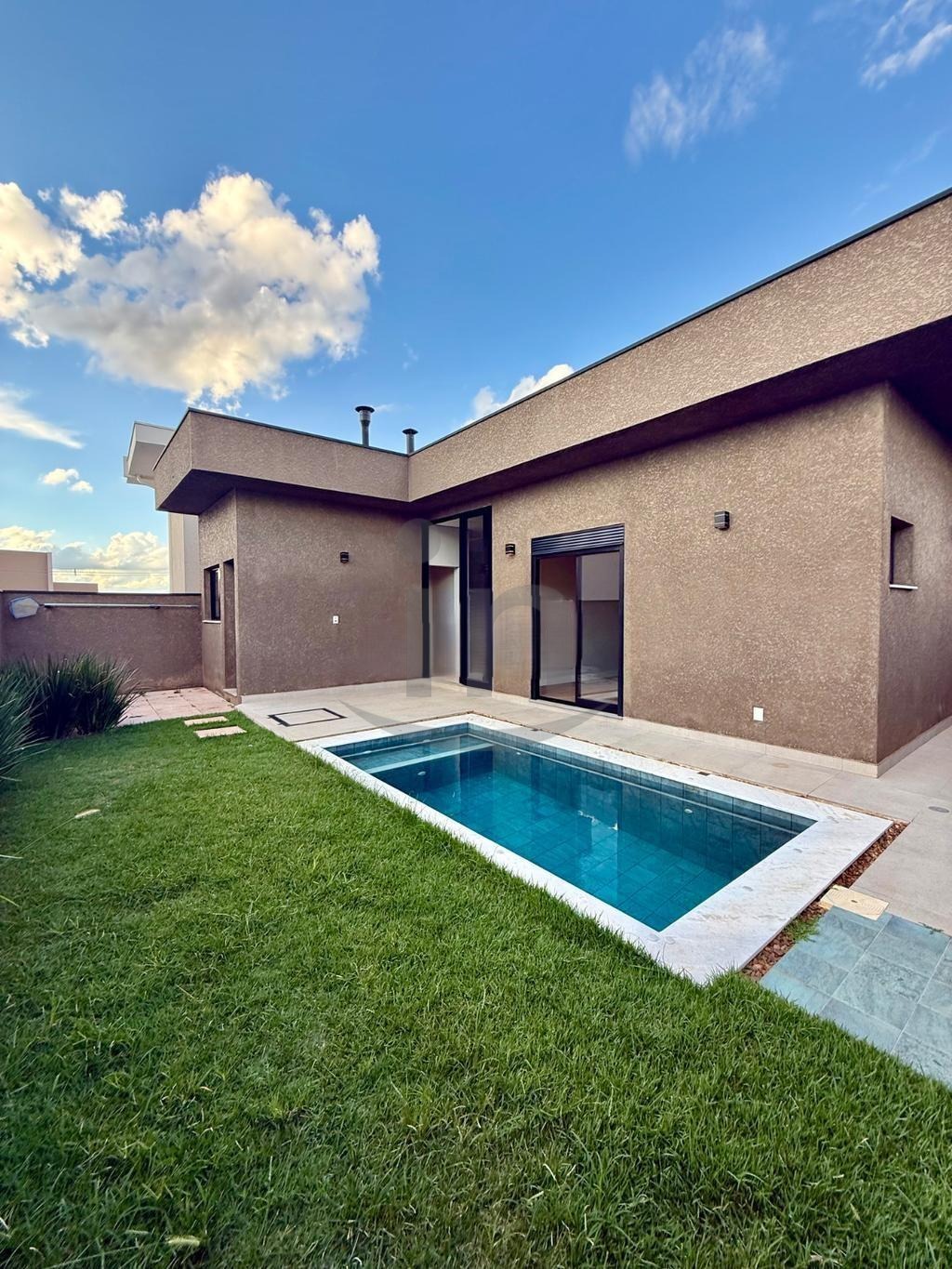 Espaço gourmet com quintal, piscina e churrasqueira.